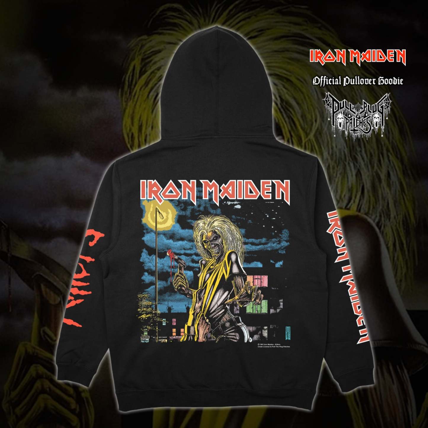 Officially licensed IRON MAIDEN pullover hoodie.